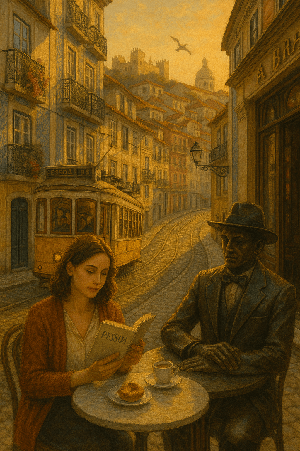 Era imposible no sentirse conectada con él, con la Lisboa que vivía en sus palabras y que ahora respiraba en cada esquina. En ese instante, con el café caliente entre sus manos y el murmullo de la ciudad como banda sonora, Camila comprendió por qué Pessoa amaba tanto Lisboa. Ella también había caído bajo su hechizo.